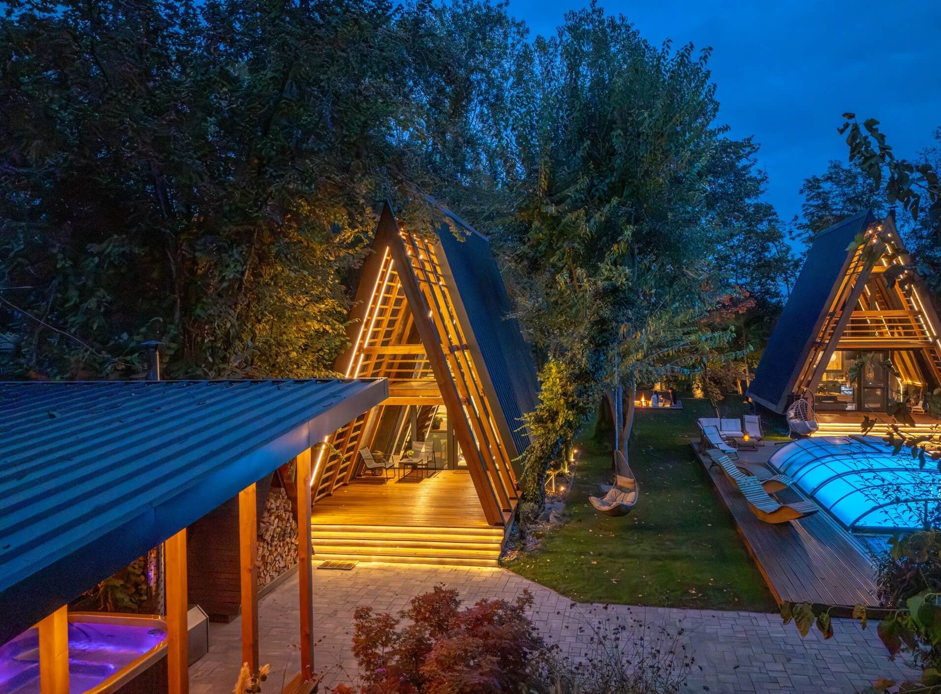A szabadtéri medence, a fatüzelésű dézsa és az autentikus finnszauna gondoskodnak a teljes testi-lelki feltöltődésről. Nyári konyhánk ipari rostlappal, fatüzelésű grillel, hűtővel, mosogatógéppel és kávéfőzővel is fel van szerelve – minden adott egy közös főzéshez vagy egy nyáresti vacsorához a csillagos ég alatt.